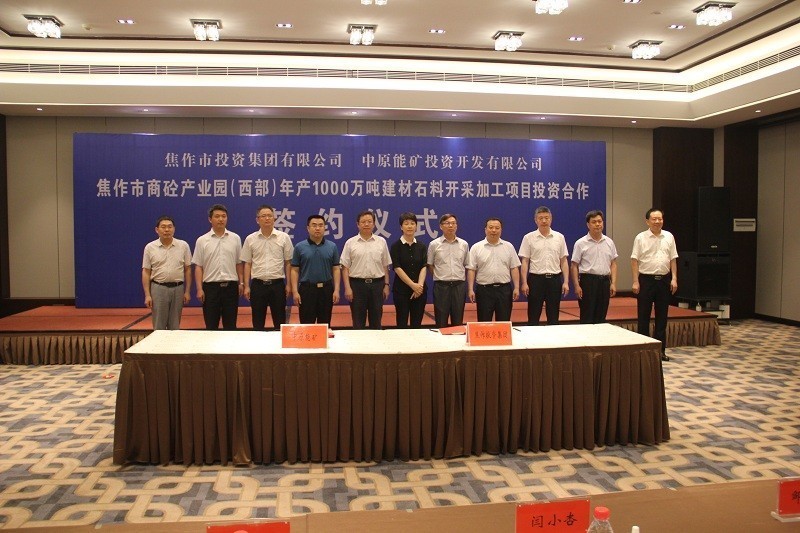 5月17日上午,集團(tuán)公司與中原能礦投資開(kāi)發(fā)有限公司在迎賓館舉行焦作市商砼產(chǎn)業(yè)園(西部)年產(chǎn)1000萬(wàn)噸建材石料開(kāi)采加工項(xiàng)目投資合作簽約儀式。河南省國(guó)土資源廳黨組成員、河南省國(guó)土資源開(kāi)發(fā)投資管理中心主任吳孔軍,焦作市副市長(zhǎng)閆小杏,集團(tuán)公司董事長(zhǎng)鄒仲春、總經(jīng)理王敏等70余人出席簽約儀式。